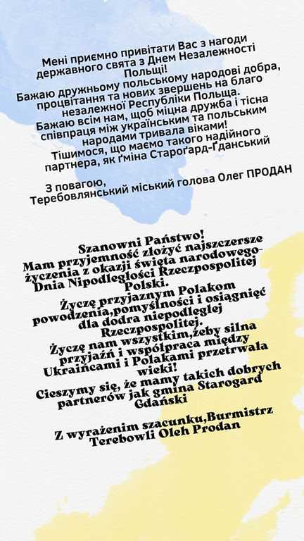 Z przyjemnością przekazujemy Wam życzenia z okazji Święta Niepodległości które otrzymaliśmy z Trembowli naszego miasta partnerskiego na Ukrainie