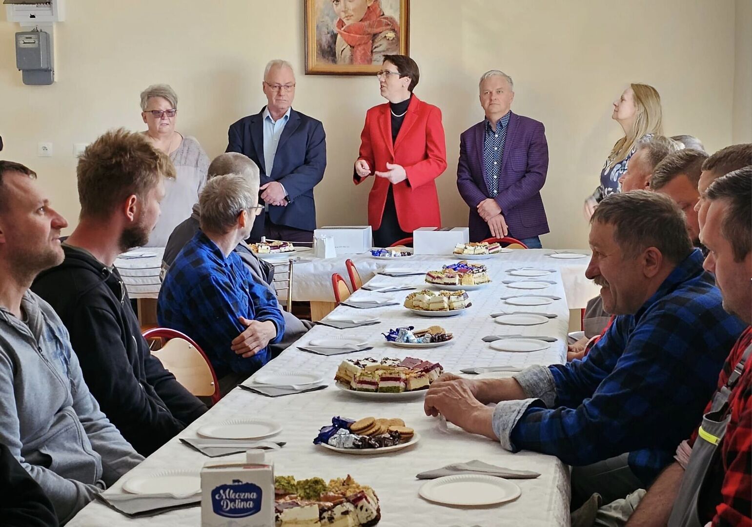 Wójt Magdalena Forc-Cherek i sekretarz Tomasz Rogalski odwiedzili załogę Gminny Zakład Usług Komunalnych w Jabłowie, aby osobiście podziękować i złożyć życzenia.