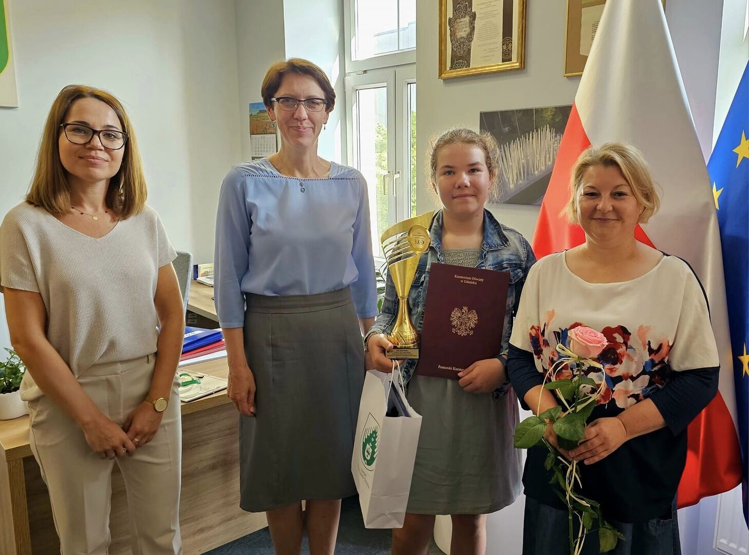 Wójt Magdalena Forc-Cherek i Naczelnik Wydziału Oświaty, Zdrowia i Spraw Społecznych Anna Klein z przyjemnością złożyły gratulacje i wręczyły upominek.
