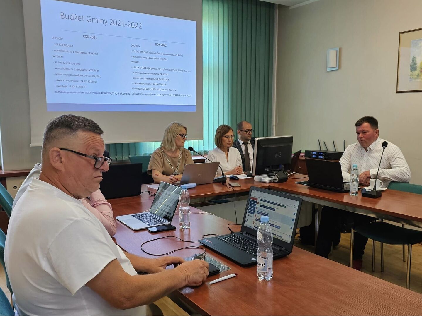 Głosowana poprzedziła debata nad raportem o stanie gminy, który zreferowała Wójt Magdalena Forc-Cherek.