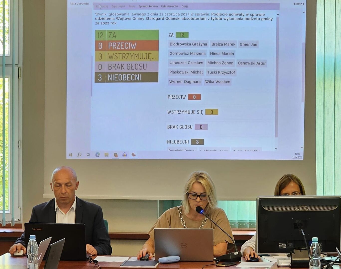 Radni Gminy Starogard Gdański udzielili wotum zaufania i absolutorium Wójt Magdalena Forc-Cherek z tytułu wykonania budżetu za rok 2022.