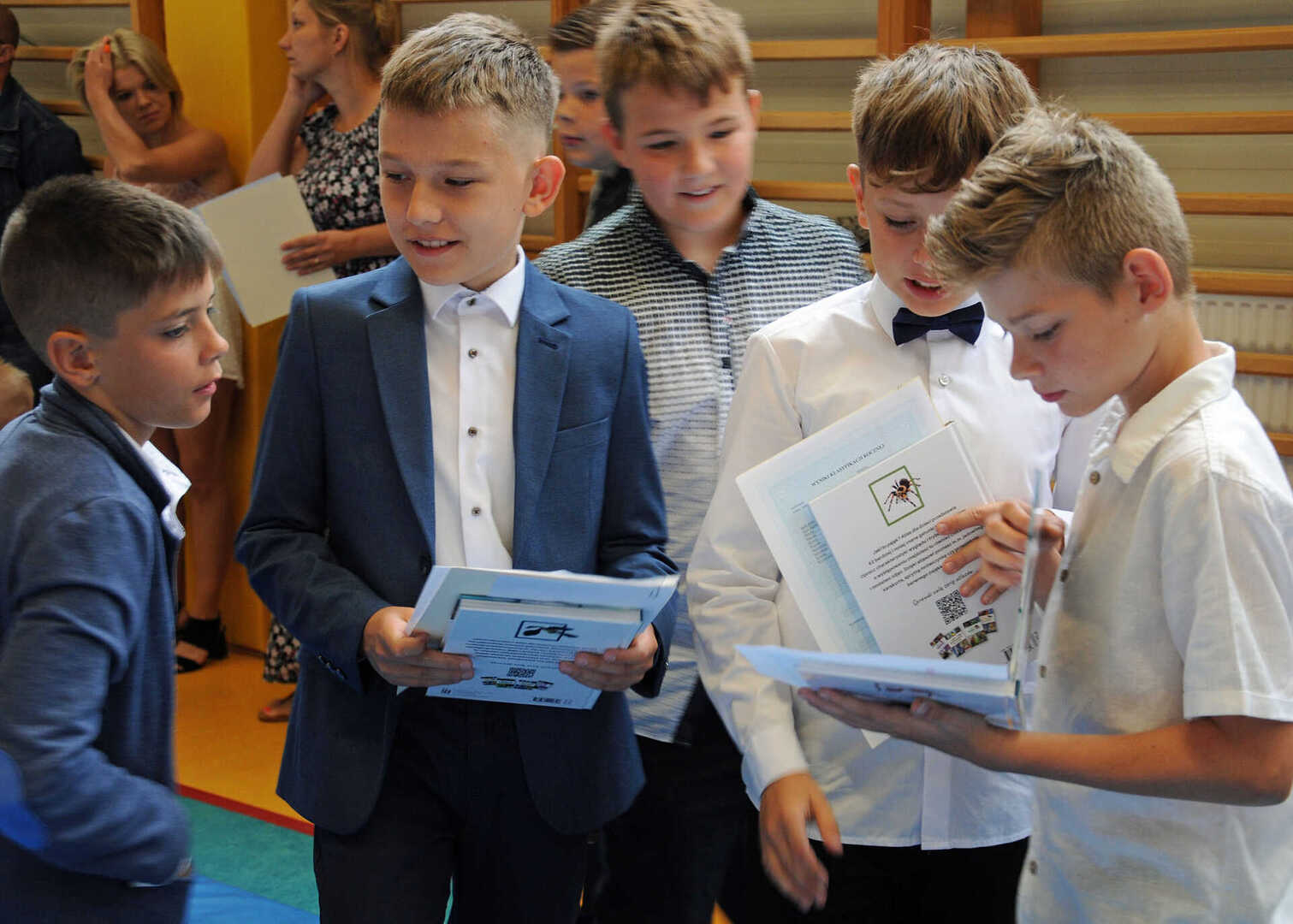 Uczniowie otrzymali świadectwa i nagrody za wyniki w nauce.
