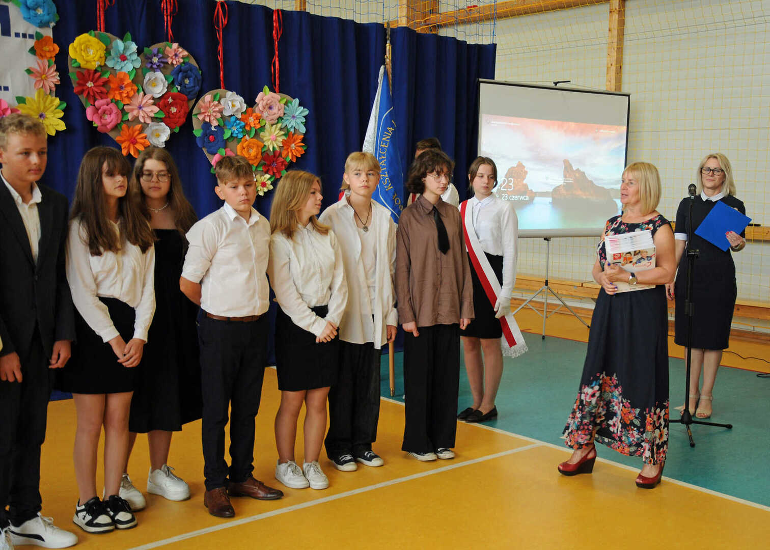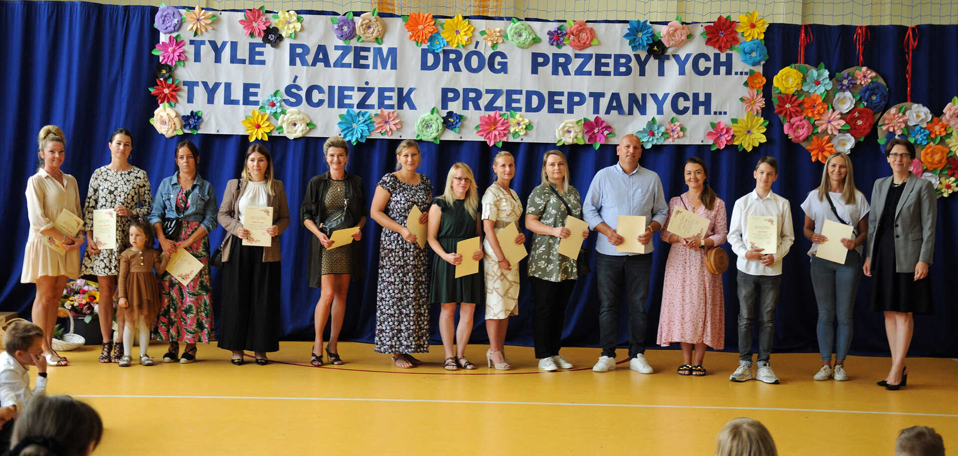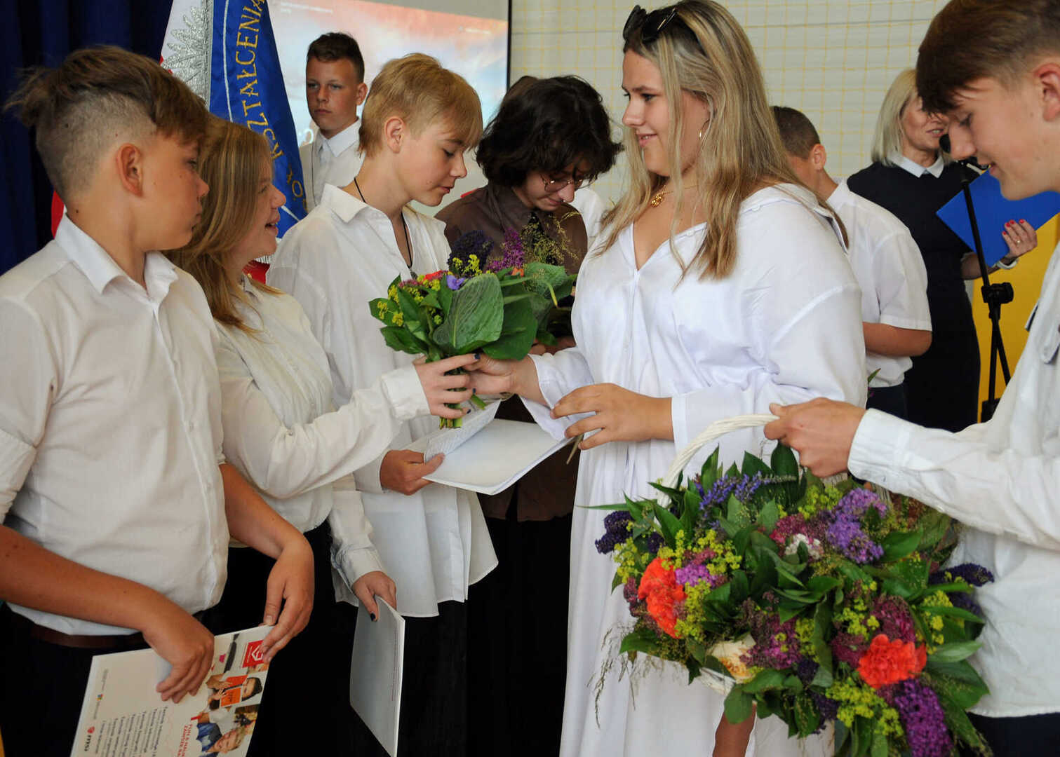 Wójt Magdalena Forc-Cherek, Zastępca Wójt Łukasz Kruszyński i Naczelnik Wydziału Oświaty, Zdrowia i Spraw Społecznych Anna Klein, osobiście mieli okazję uczestniczyć w uroczystościach, gratulowali oraz życzyli udanych zdrowych i bezpiecznych wakacji.