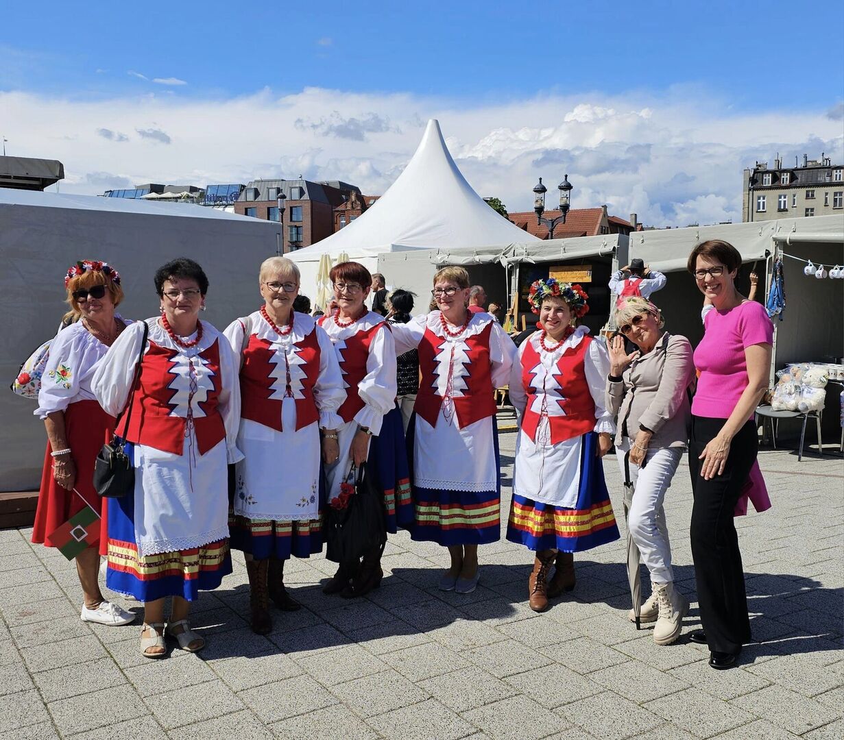 Tradycyjny barwny korowód występy regionalnych zespołów prezentacje rękodzieła degustacja kociewskich przysmaków wystawa w Nadbałtyckim Centrum Kultury.