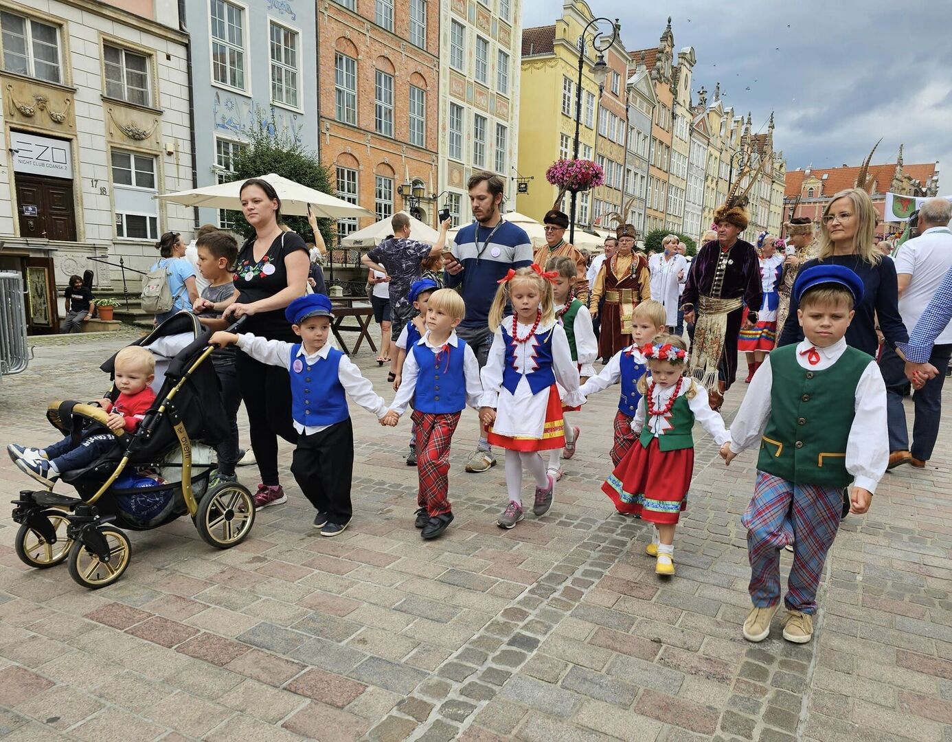 Barwna "rzeka" Kociewaków na Jarmarku św. Dominika w Gdańsku. Było radośnie i kolorowo.